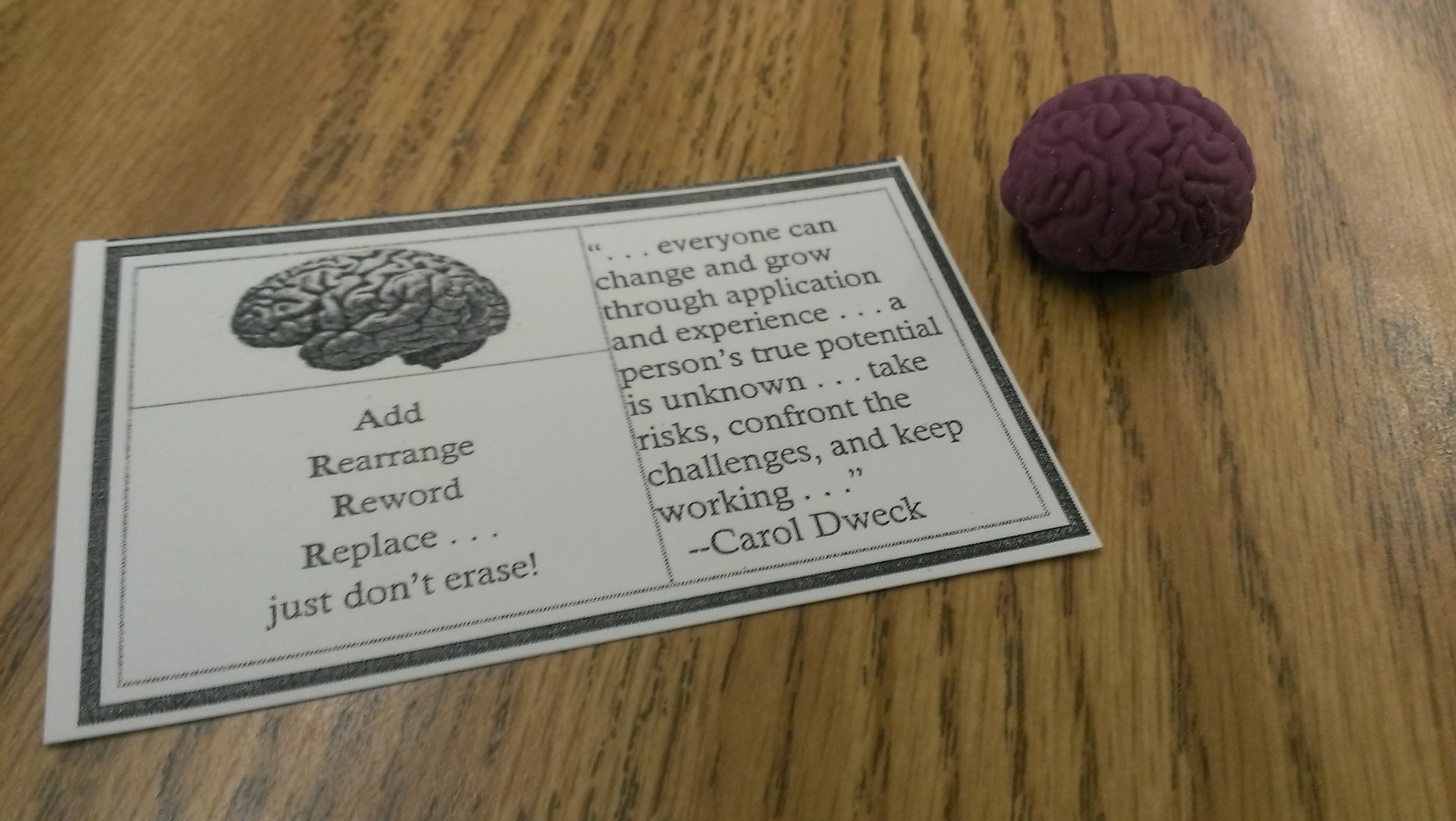 Yesterday, I gave each student a “gift” to encourage them to do their best.  It was a simple token: a note with a reminder about revision and an inspirational quote from one of my favorite researchers—Carol Dweck.